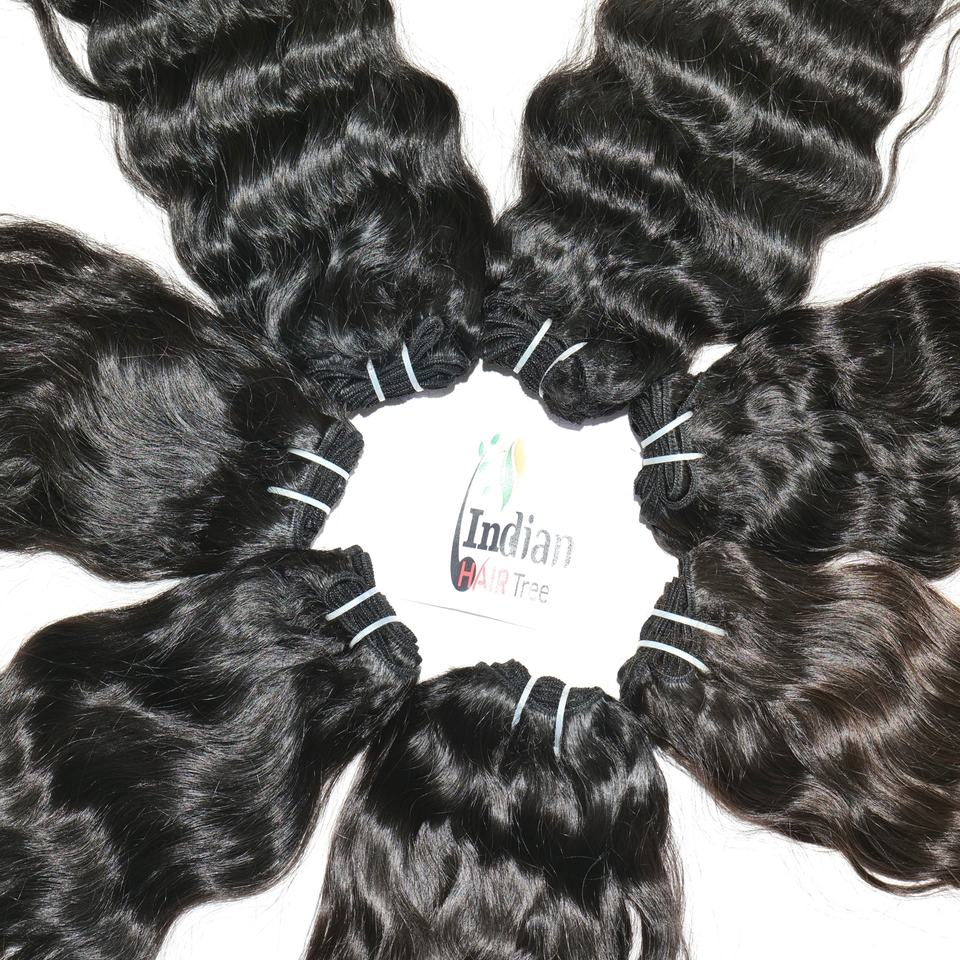 Extensiones de cabello humano indio Remy de onda profunda de onda sedosa rizada paquete negro de Color Natural para mujeres