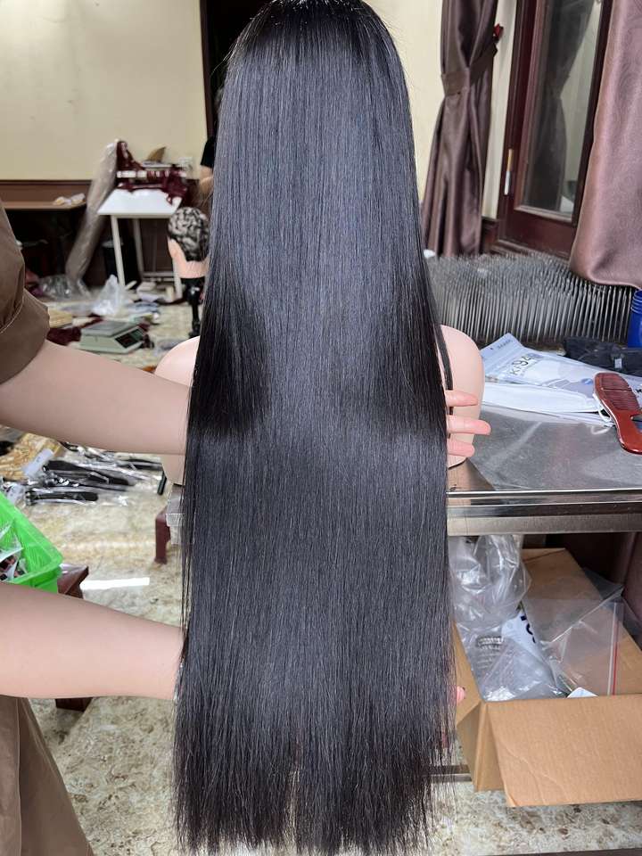 Peluca de Cabello Humano Natural Liso con Frente de Encaje Transparente HD sin Pegamento, Cabello Vietnamita Virgen Negro sin Pegamento