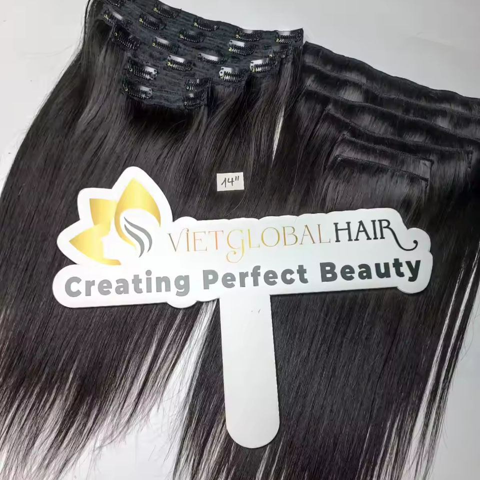 Extensiones de cabello humano vietnamita crudo 100%, Color Natural, cutícula recta alineada, cabello virgen, estilo Clip-In