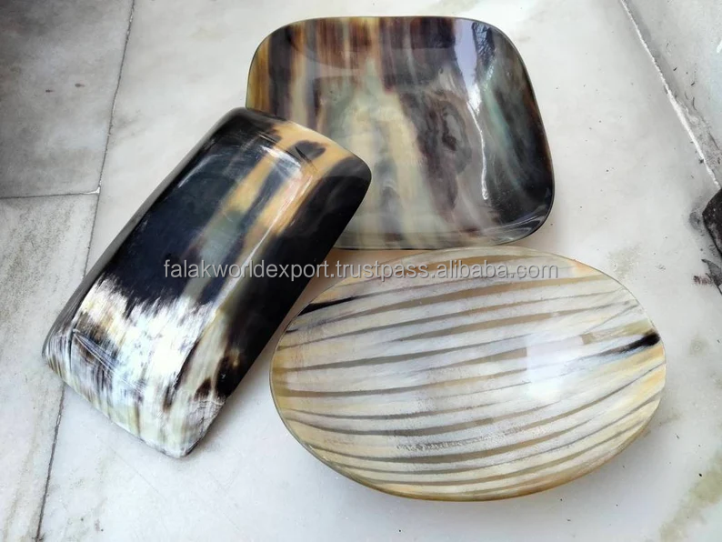 Plato de servicio de cuerno de vaca natural, bandeja de cuerno hecha a mano para aperitivos, frutas, vajilla de cuerno única para uso en el hogar y regalo de FWE
