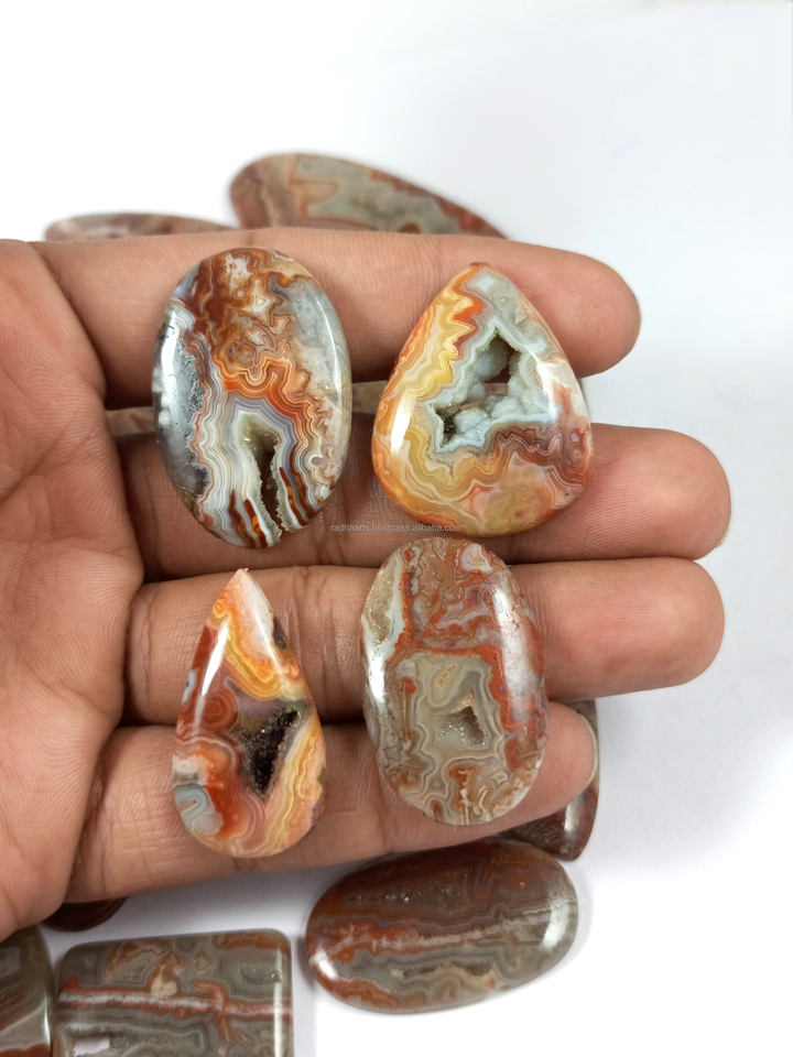 Cabujón de Ágata Natural Crazy Lace de Radha Arts, Cristal Curativo de Cuarzo de Alta Calidad de 4g-15g, Parte Posterior Plana, Piedra Preciosa Suelta al por Mayor