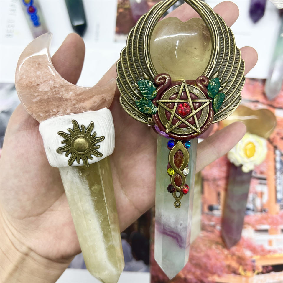 Cetro mágico de cristal natural, piedra curativa, varita de bola de cuarzo, cetro de amatista para bruja