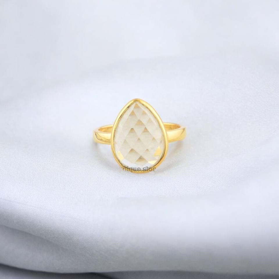 Anillo de cristal de cuarzo natural, anillo de Plata de Ley 925 hecho a mano, joyería de piedras preciosas facetadas, anillo chapado en oro de 18K para mujer