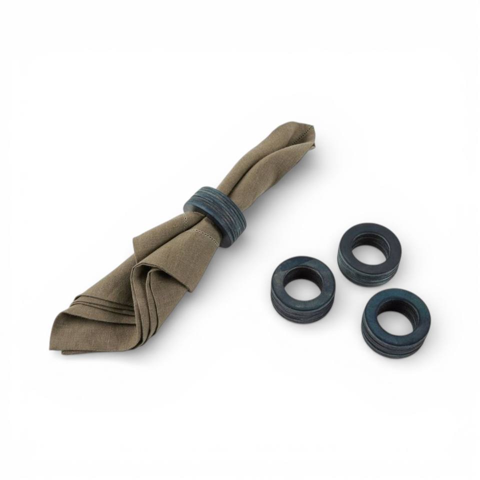 Anillos de Servilleta de Mármol Oscuro Natural con Textura de Piedra Rica para una Decoración de Comedor Sofisticada y Única