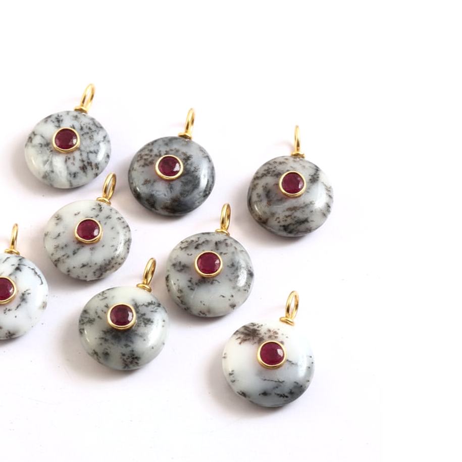 Product name:Natural Dendrite Opal Round Shape Inlay Gemstone Pendant