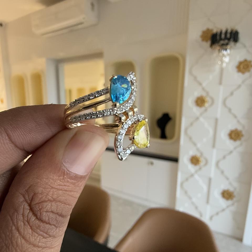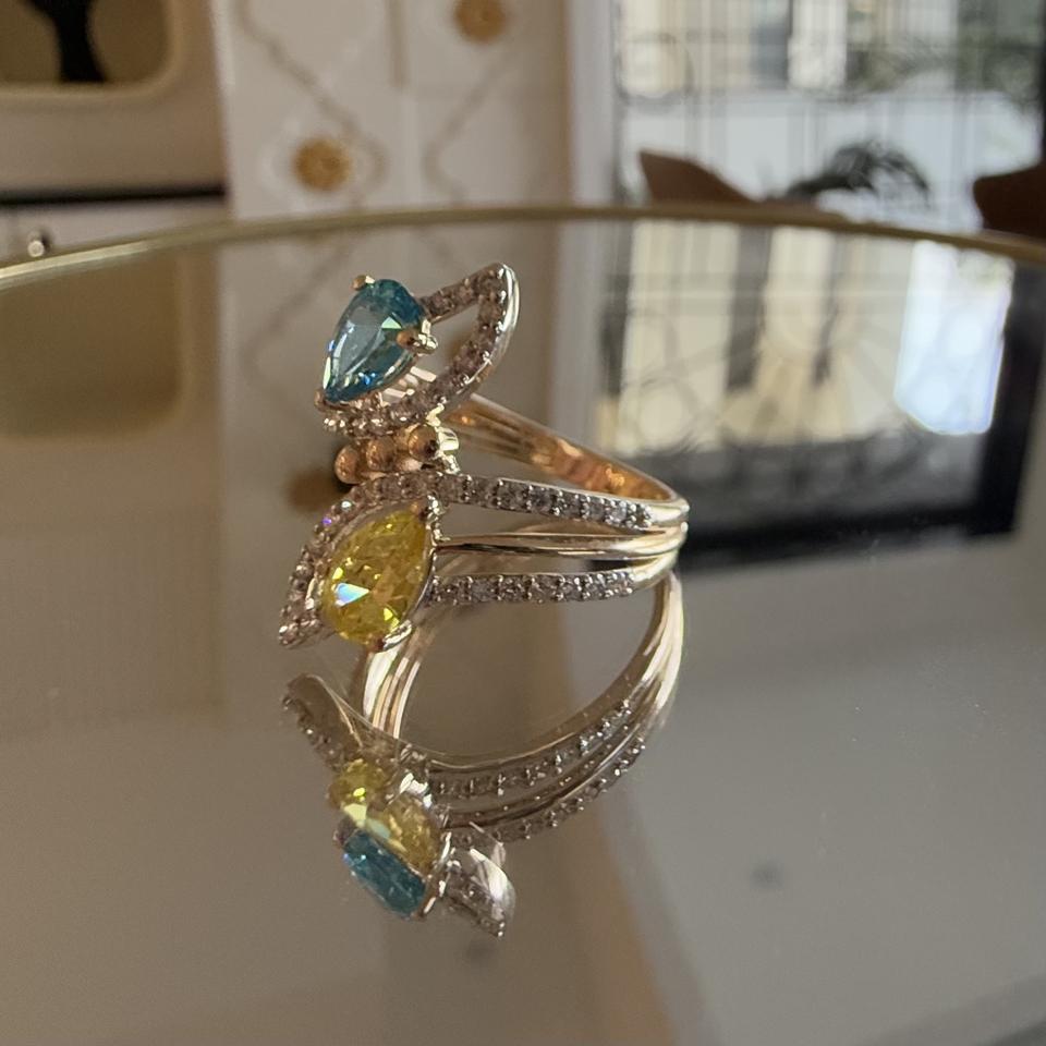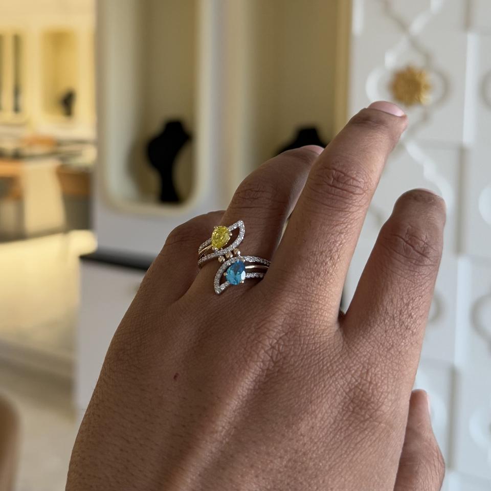 Piedra de color única y anillo de diamante natural Diseño de lujo de oro sólido de 14K o 18K