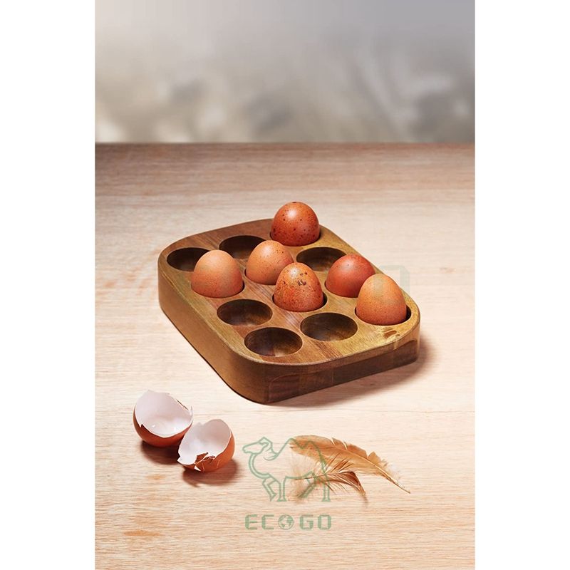 Estante de madera para huevos de elementos naturales con asas de transporte para 12 huevos