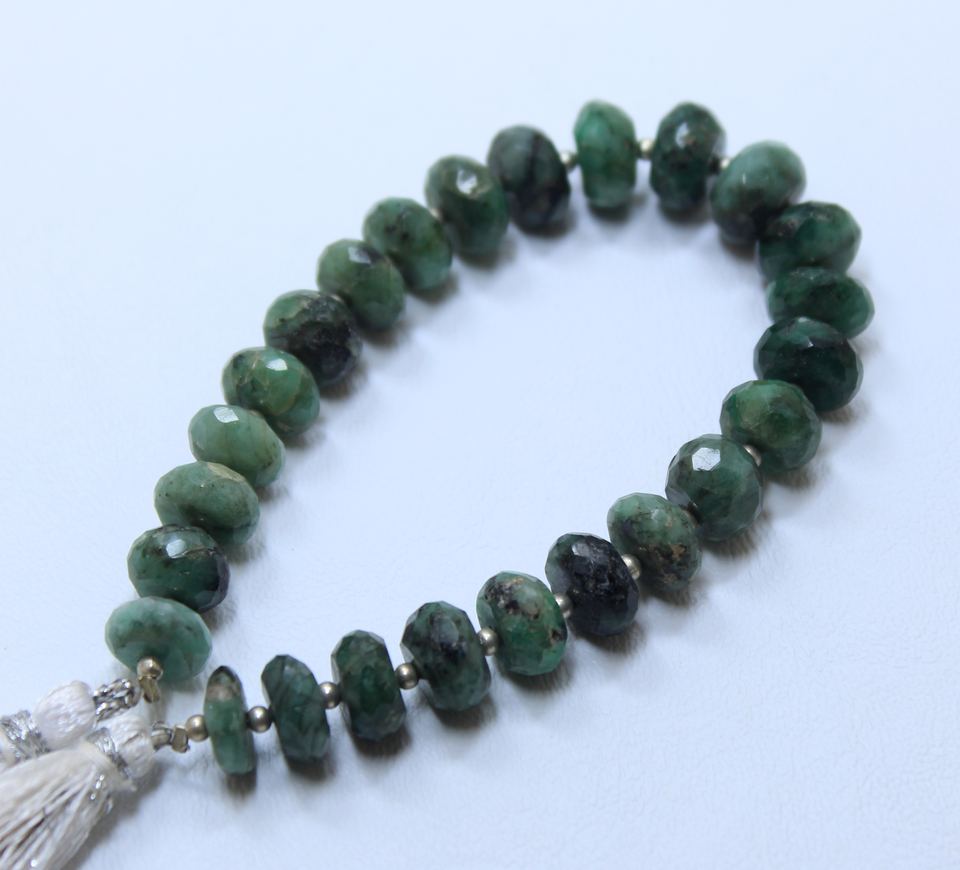 Cuentas de piedras preciosas sueltas con forma de Rondell facetadas de Esmeralda natural aprox. 6,6 ''Tamaño 10MM para la fabricación de joyas