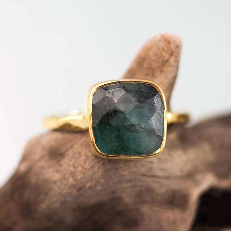 Anillo de plata de ley 92,5 con forma cuadrada de Esmeralda Natural, joyería de piedra preciosa de primera calidad