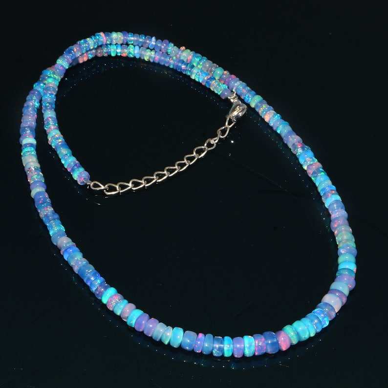 Palabra clave:Collar de cuentas de ópalo de fuego azul etíope con piedras de plata 925