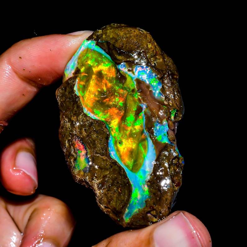 Palabra clave:Ópalo en bruto, gema suelta, brilla con un juego de colores fuegosos ideal