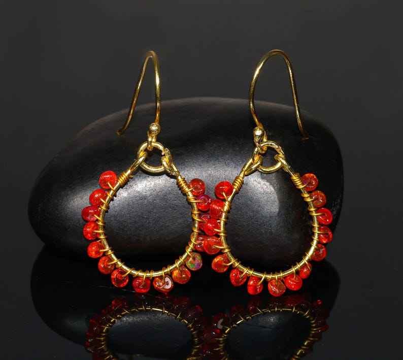 Palabra clave:Pendientes de racimo de cuentas de ópalo etíope rojo fuego brillan con un resplandor ardiente