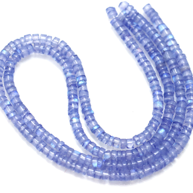 Cuentas Heishi de Piedra Lunar Azul Natural Brillante en Forma de Neumático, Cuentas de Piedra Lunar Azul en Forma de Rueda de 15 Pulgadas al por Mayor, para Manualidades