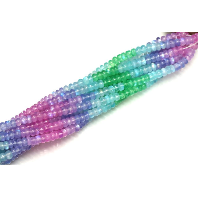 Cuentas redondas lisas de piedra lunar arcoíris natural brillante, 15 pulgadas, 5-8 mm, cuentas de piedras preciosas rosas, azules y verdes, joyería al por mayor