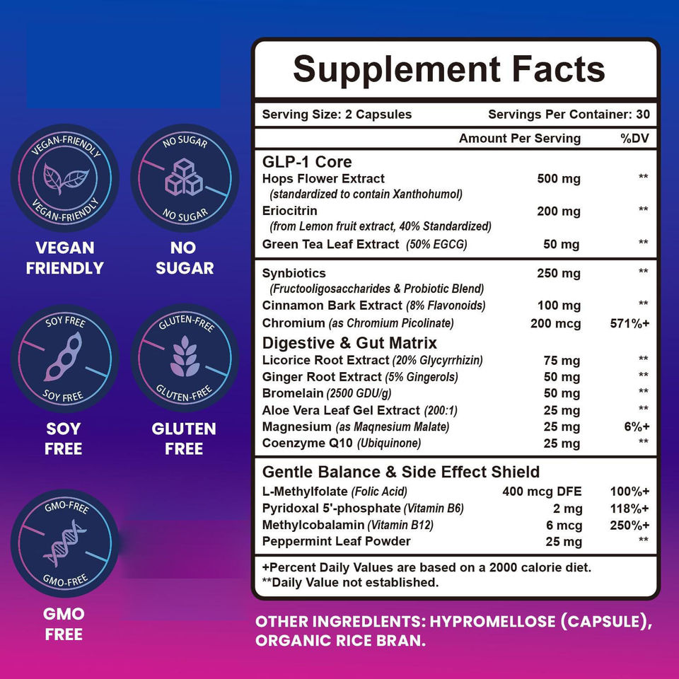 Cápsulas de Suplemento GLP-1 de Fórmula Natural para Apoyo Energético Metabólico, con Fibra Dietética