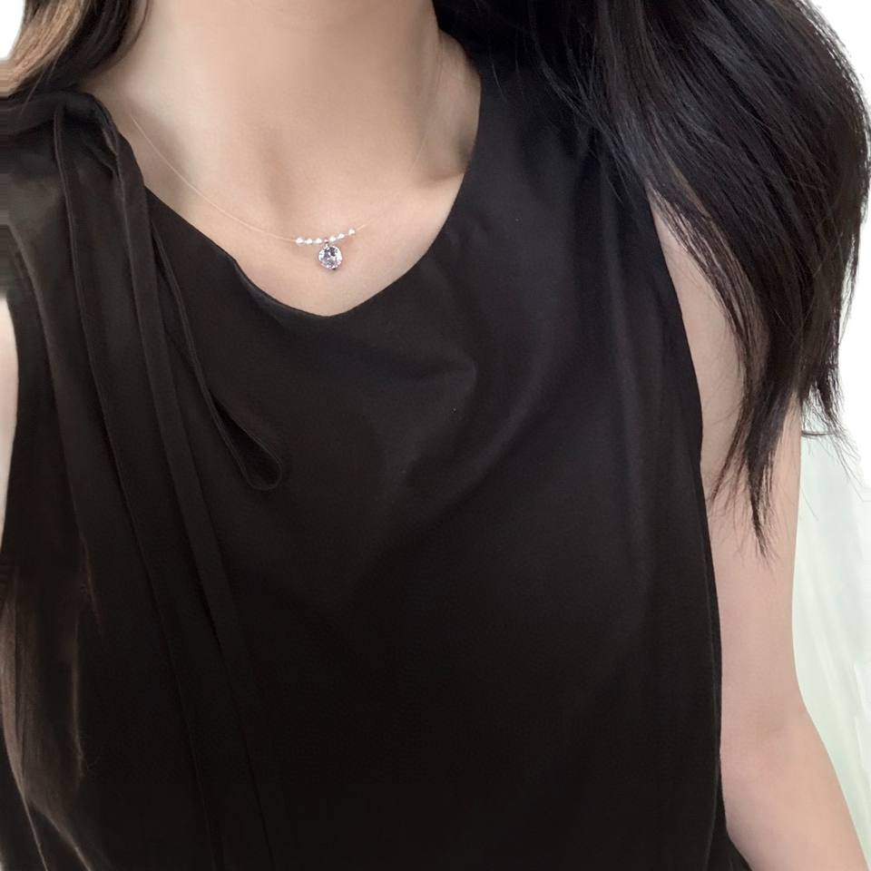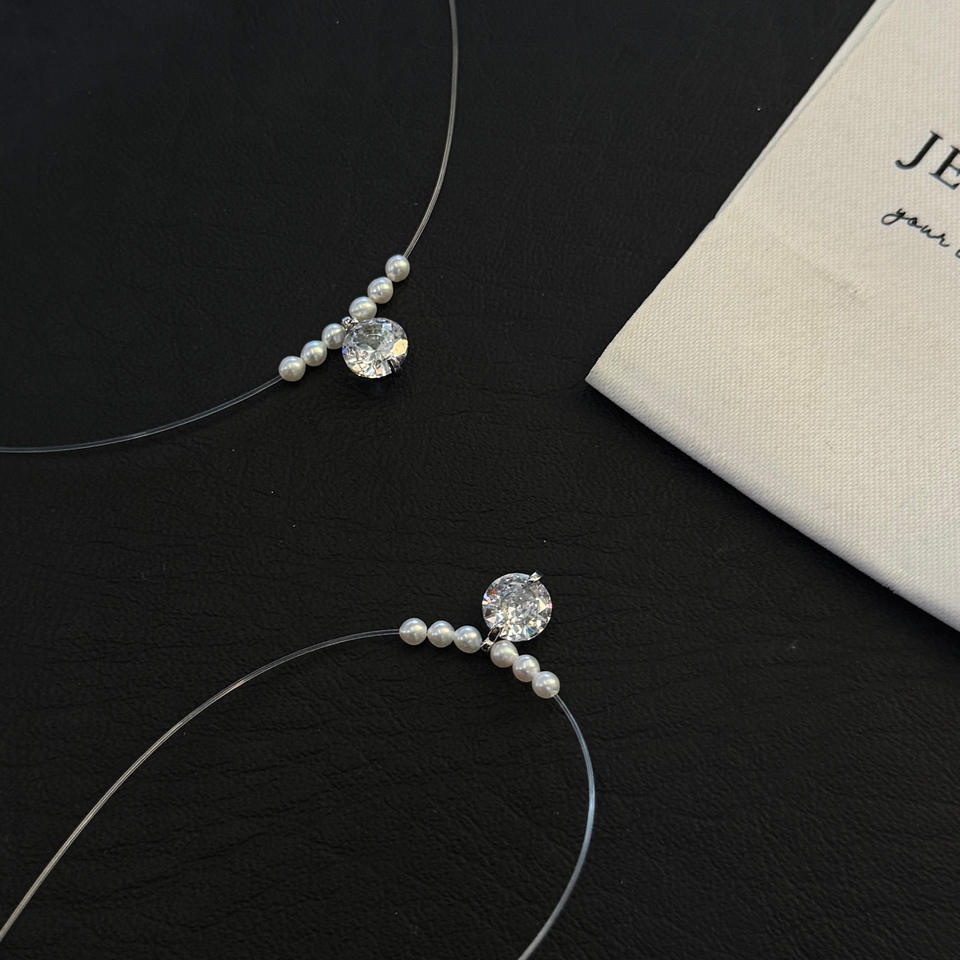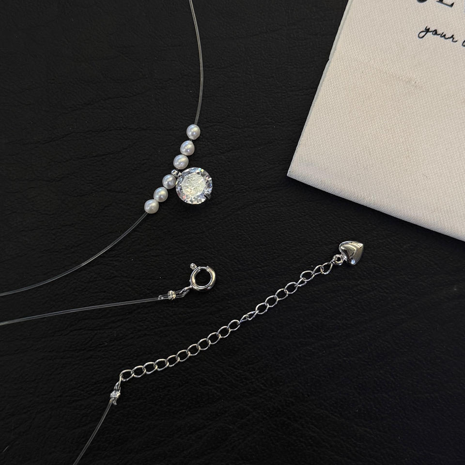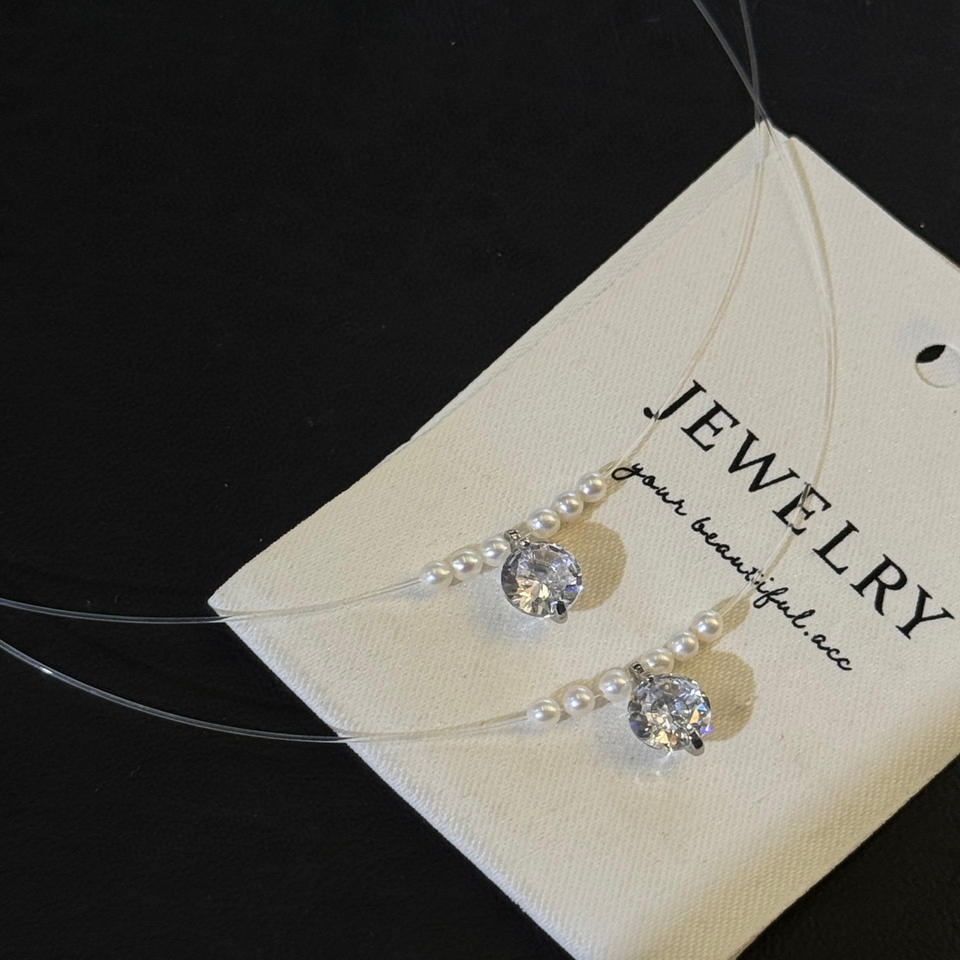 Collar de Perlas Naturales de Agua Dulce de 3-4 mm, Diamantes Cálidos que se Encuentran con un Brillante Collar de 'Seda de Pescado Invisible'