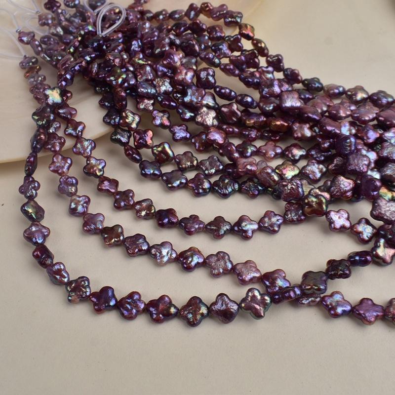 Collar de Perlas de Agua Dulce Naturales con Forma de Trébol Morado, Cuentas Sueltas Semiterminadas Blancas para Accesorios de Joyería DIY