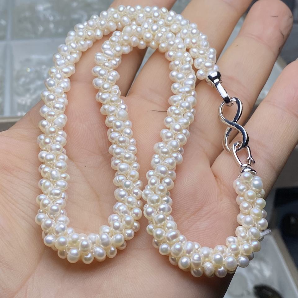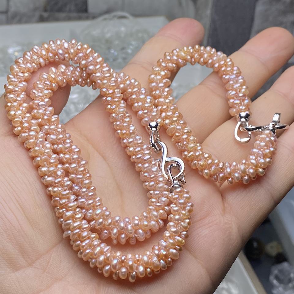 Collar y Pulsera de Perlas Naturales de Agua Dulce, Estilo Barroco, Tejidas a Mano