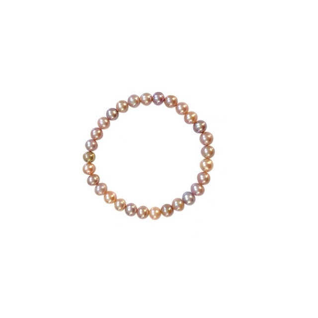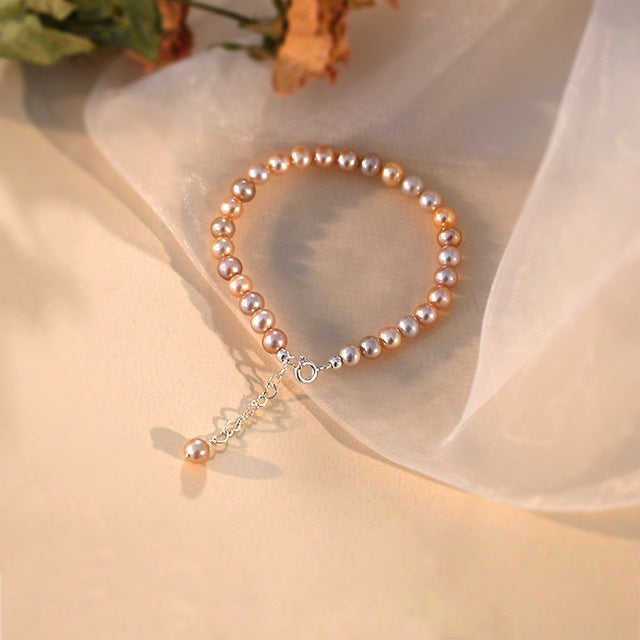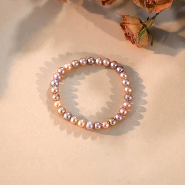 Pulsera de Perlas Naturales de Agua Dulce WENCHI para Mujer, Color Caramelo, Cuerda Elástica con Brazaletes de Plata de Ley 925, 30 g