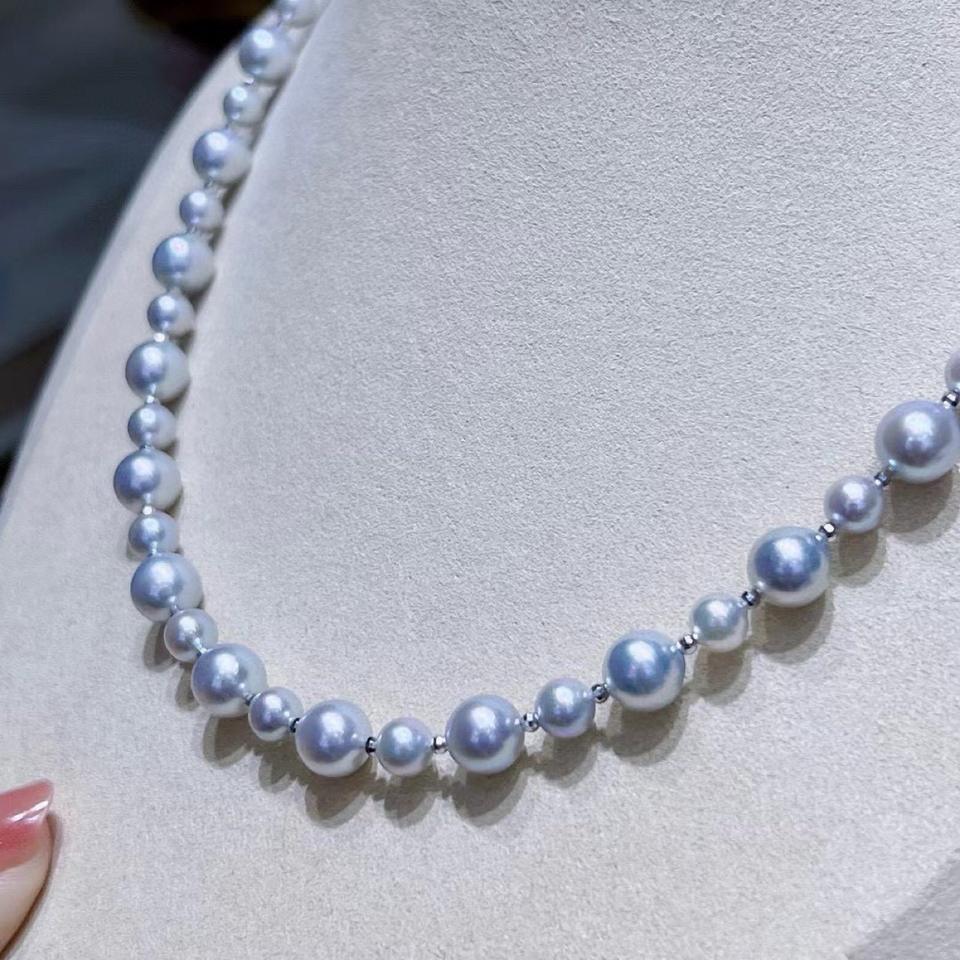 Collar de Perlas Naturales de Agua Dulce, Color Sirena, Cuentas Redondas de 10-9 mm, Casi Sin Tiempo para Regalar, Material de Cáñamo