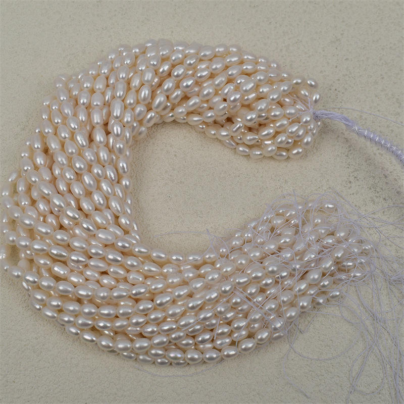 Collar de Perlas Blancas Naturales de Agua Dulce, Cuentas de Arroz Largas de 2-4-7 mm, Cuentas Sueltas Semiterminadas para Manualidades, Cuentas de Arroz Pequeñas