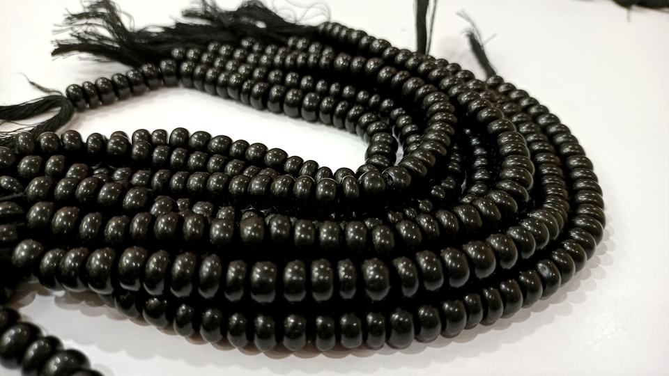 Cuentas de piedra Rondelle de obsidiana negra Natural de 8 pulgadas de largo, hebra Lisa para fabricación de joyas y pulseras