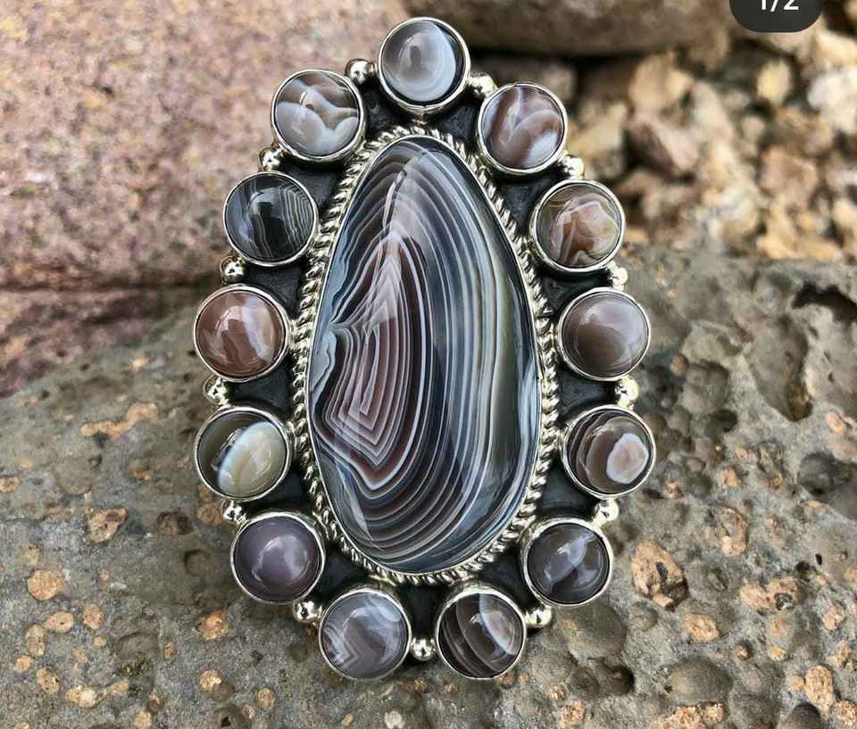 Palabra clave:Botswana ágata natural de piedras preciosas hechas a mano anillo declaración joyería