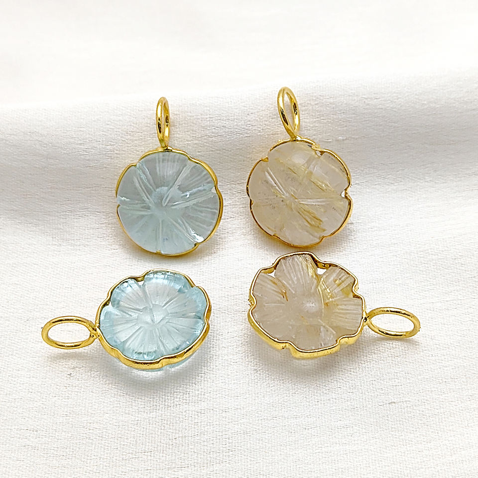 Colgante chapado en oro hecho a mano tallado en flor de piedras preciosas naturales 925 dijes tallados en plata-rutilo dorado/aguamarina