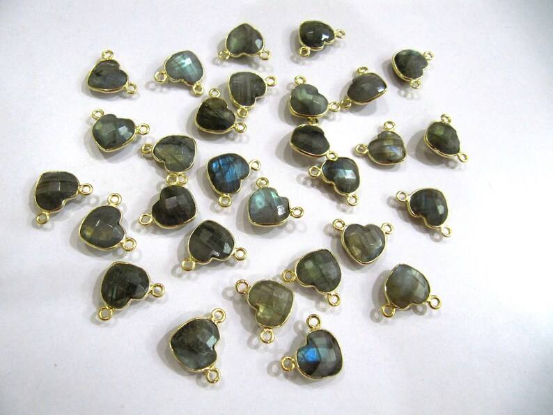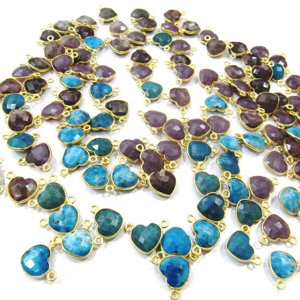 Conectores de Bisel de Doble Aro en Forma de Corazón de Piedras Preciosas Naturales de 10 mm, Multicolores, de Latón Chapado en Oro de Alta Calidad para la Fabricación de Joyas