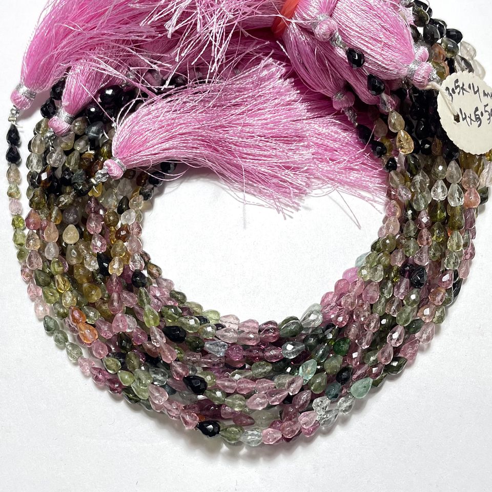 Piedra preciosa natural, turmalina multicolor, forma de gota facetada, Briolette, cuentas en forma de lágrima, hebra larga de 8 pulgadas, joyería ASP GEMS, joyería de La LT-154