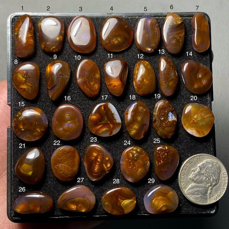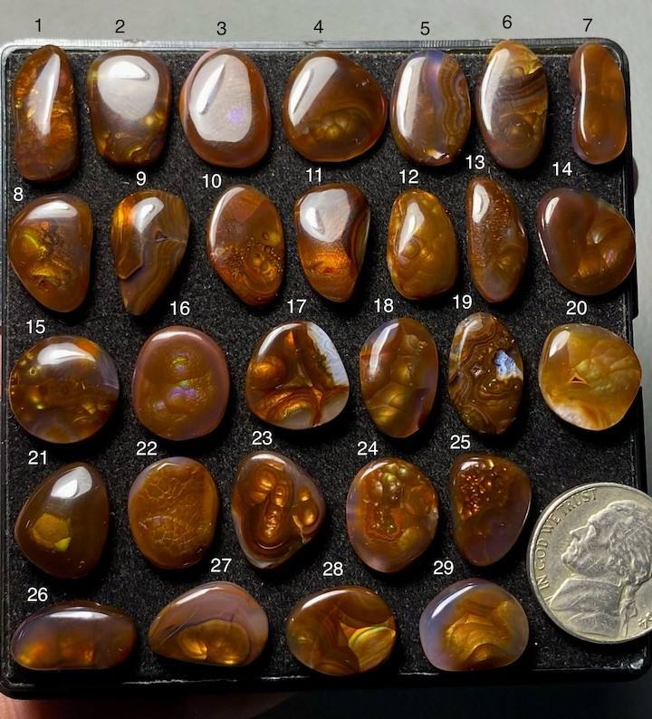 Keyword:Genuine Mexican Fire Agate Cabochon Fiery Iridescent Colours Perfect
