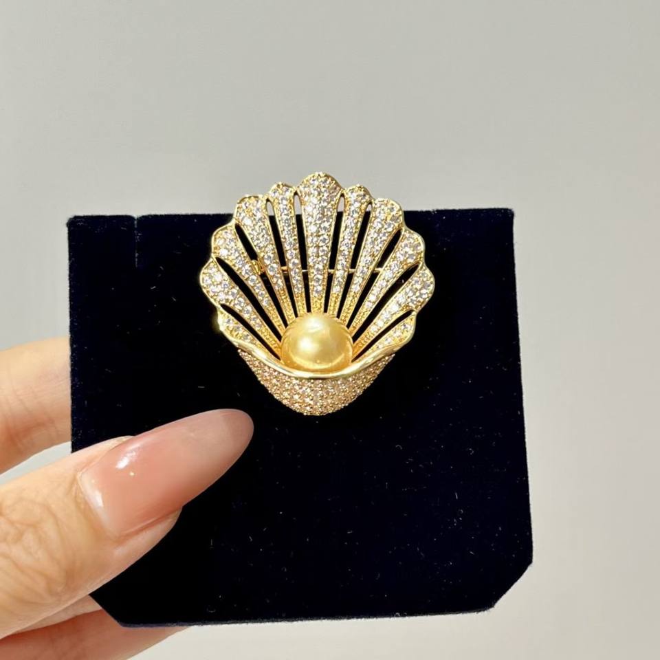 Broche de Perla Natural de Mar de 10-14 mm, Incrustaciones de Piedra Hao, Concha de Perla Dorada de Nanyang, Diseño de Flor de Concha, Chapado en Diamantes