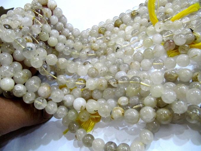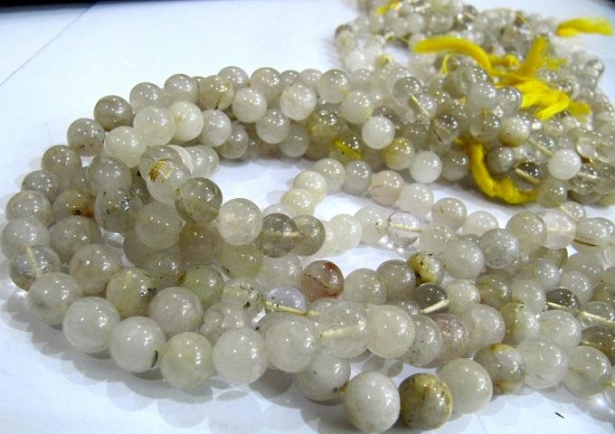 Cuentas de piedra con forma de bola rutilada dorada Natural de 9-10mm, pulseras de cristal amarillo de 13 pulgadas de largo, joyería de hilo liso
