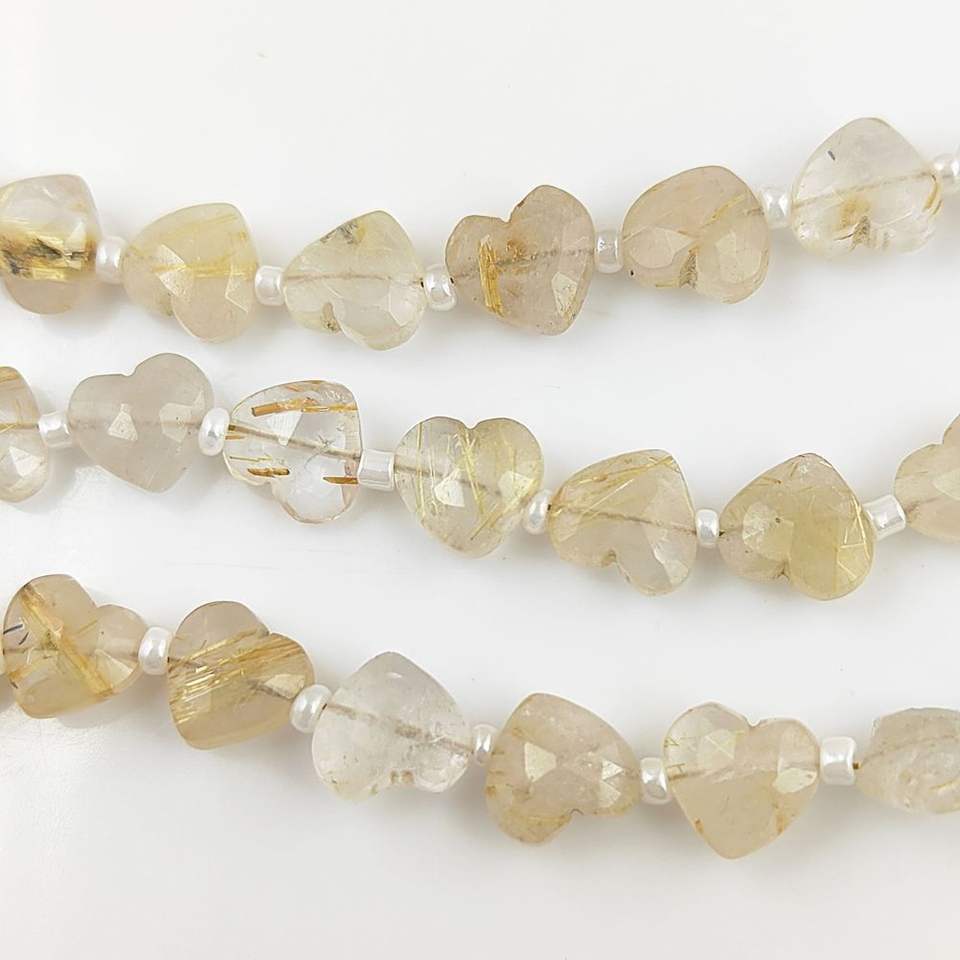 Cuentas de Cuarzo Rutilado Dorado Natural, Hebras de Piedras Preciosas de 8-9 mm, Forma de Corazón, Facetadas, Piedras Sueltas, Certificadas por Terceros, Personalizables