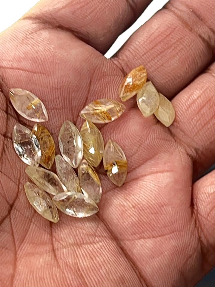 Piedra preciosa suelta de cuarzo rutilo dorado natural, piedra de corte Marquesa de 5x10mm para la fabricación de joyas por mayoristas