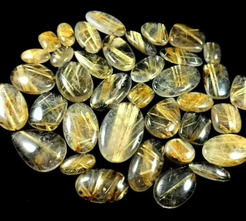 Cuarzo Rutilado Dorado Natural, Cabujón de Formas Mixtas, Gema Pulida, Venta al por Mayor, Suelta, para Hacer Joyas, Regalo para Ella