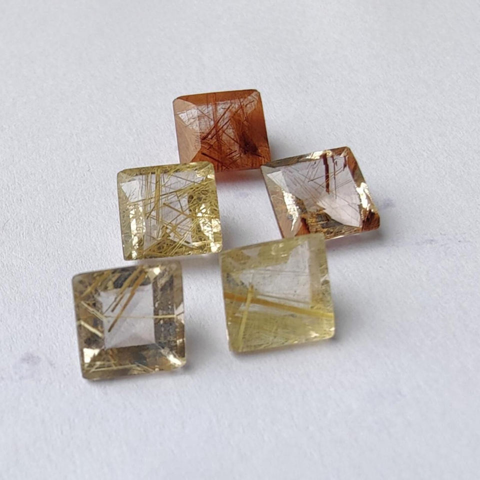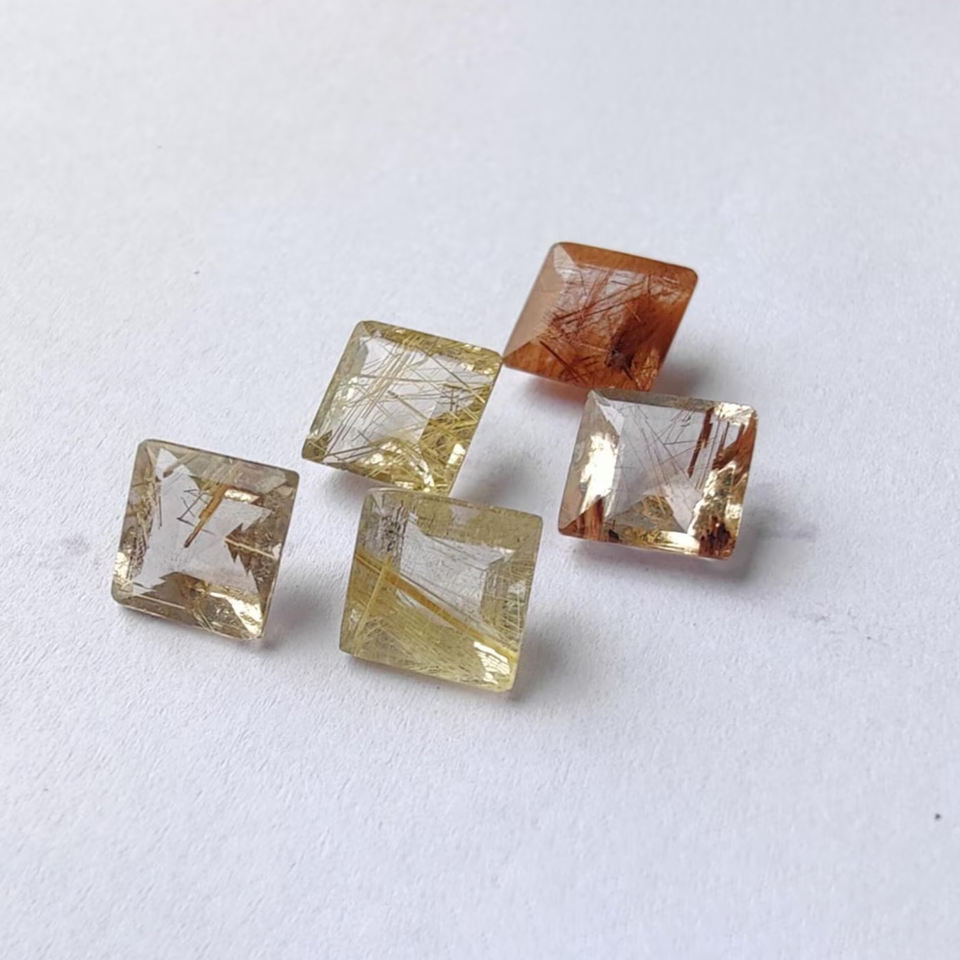 Piedra Preciosa Natural de Rutilo Dorado, Corte Cuadrado Facetado, Piedra Suelta Calibrada para Joyería