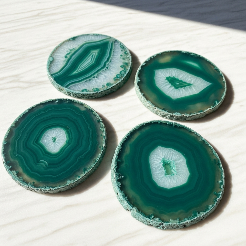 Posavasos de ágata verde natural | Posavasos de cristal pulido | Vajilla de piedras preciosas de lujo para el hogar y la Oficina