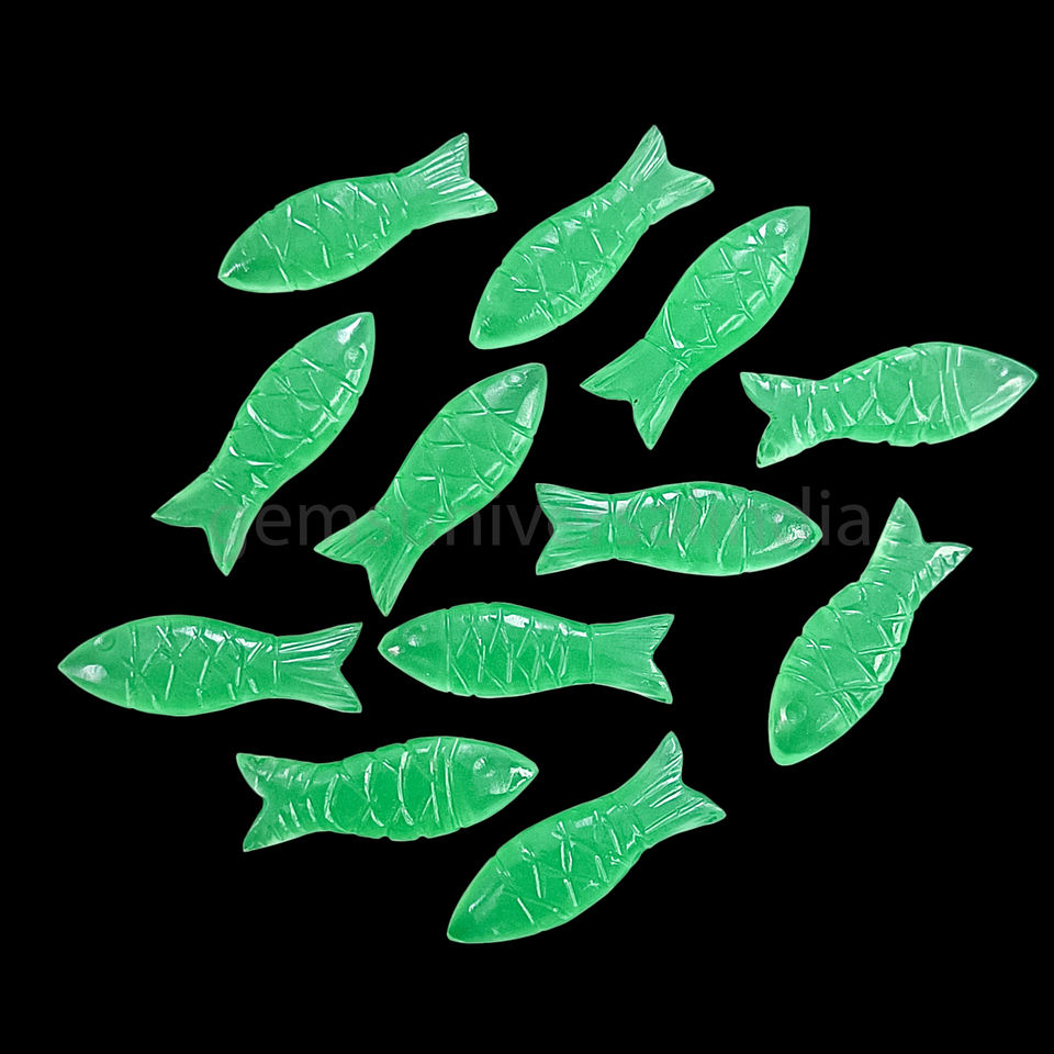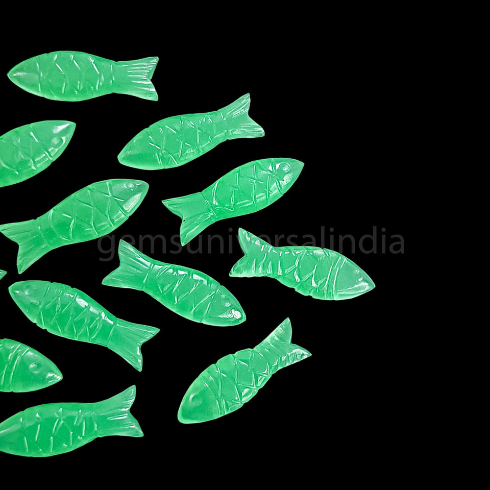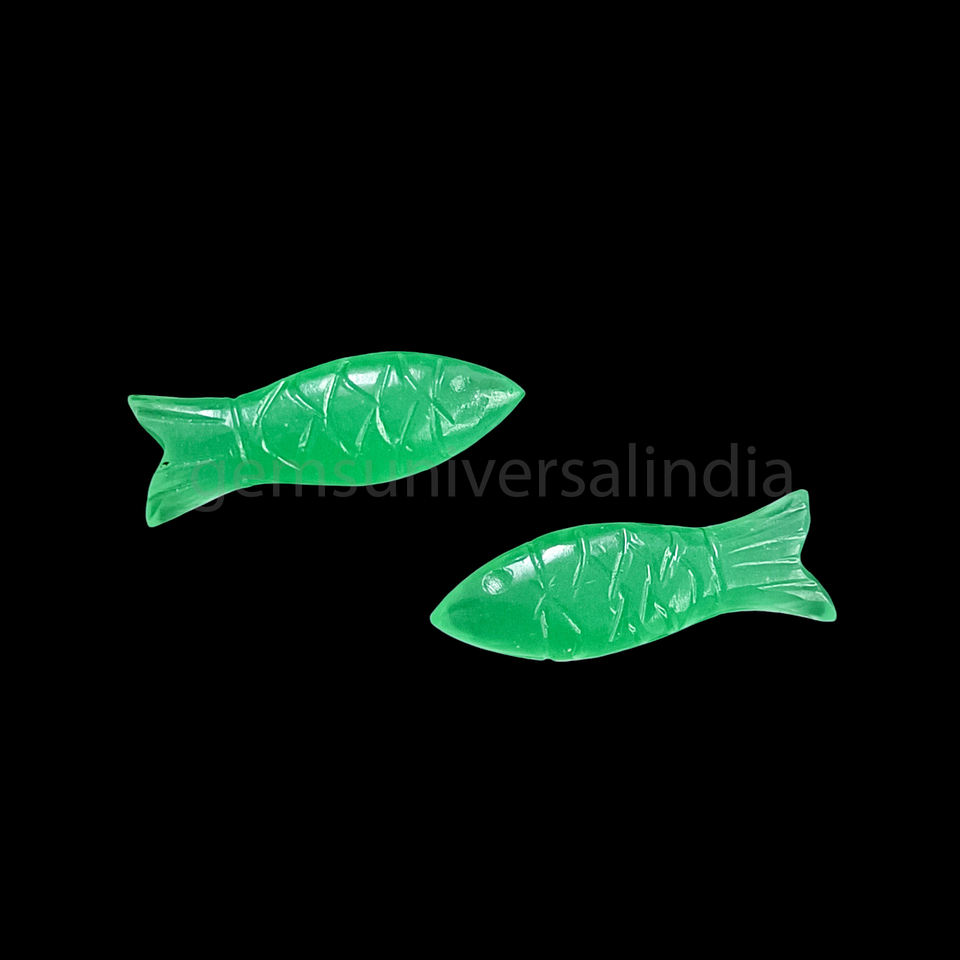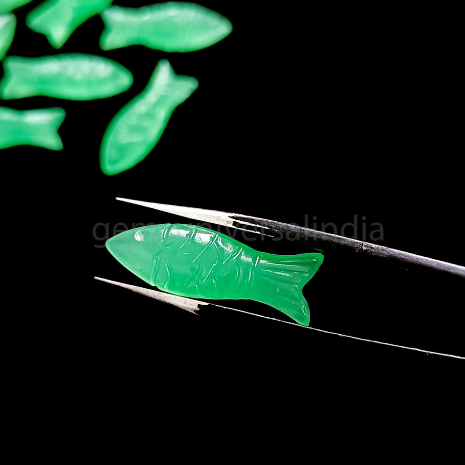 Nombre del producto:Calcedonia verde pescado forma tallada a mano piedra preciosa