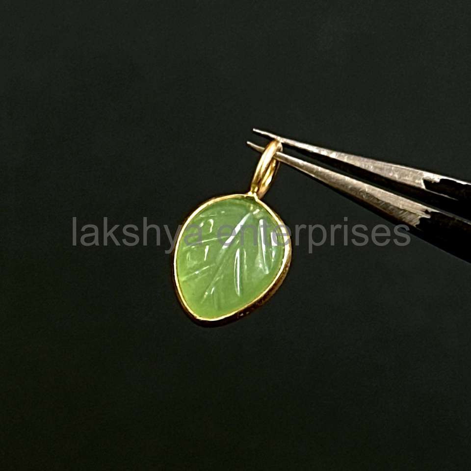 Nombre del producto:Natural verde Calcedonia tallado hoja colgante encantos
