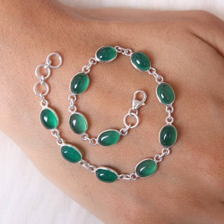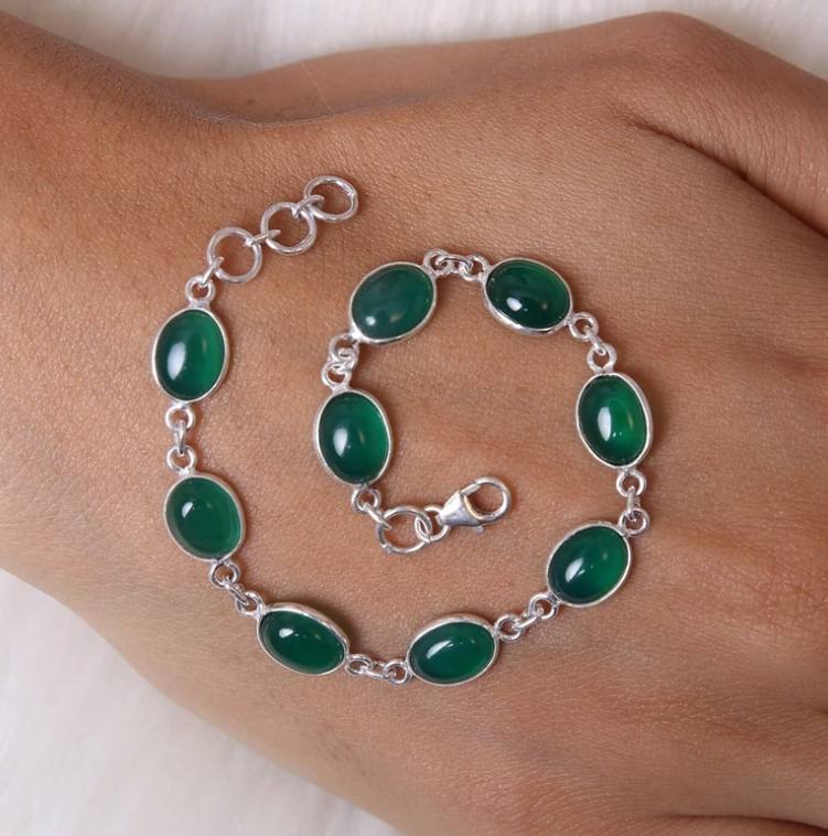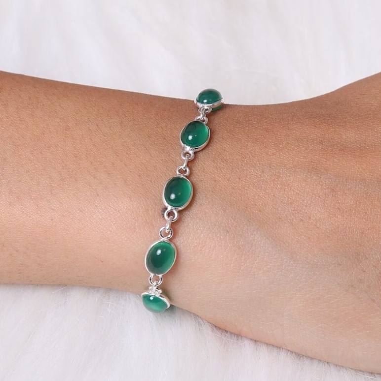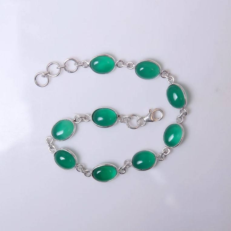 Nombre del producto:Natural verde Onyx pulsera de plata de la piedra preciosa