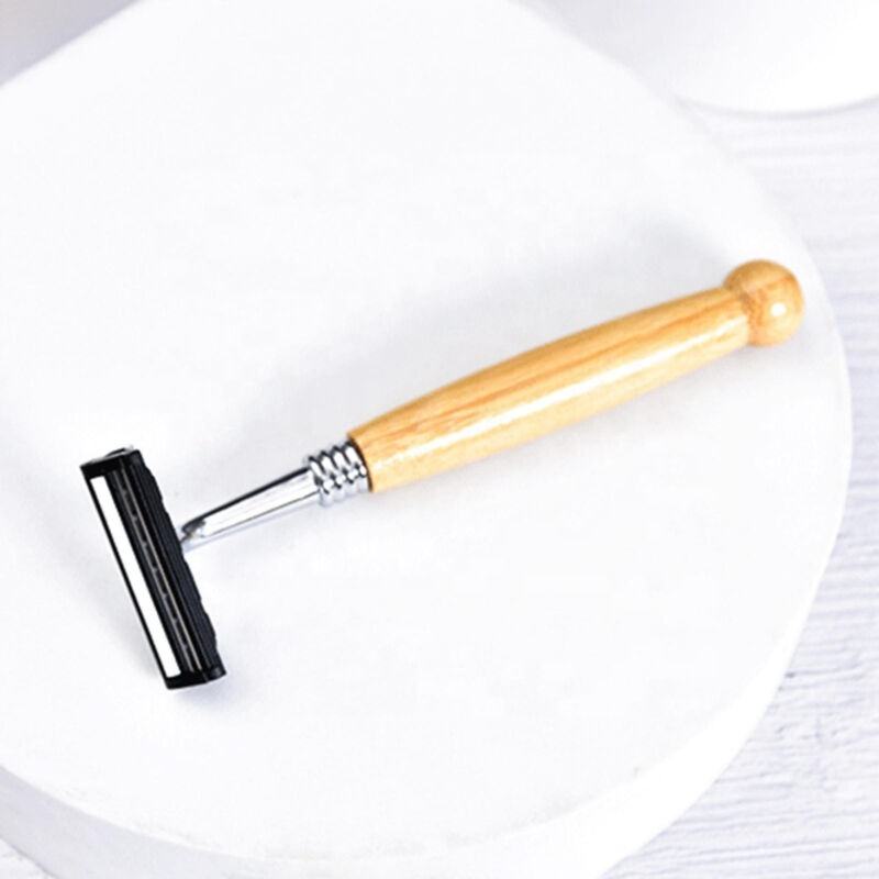 Maquinilla de afeitar de bambú embalada individualmente en bolsa o caja de papel Kraft, 500 unidades por caja maestra, tamaño: 44x42x42cm