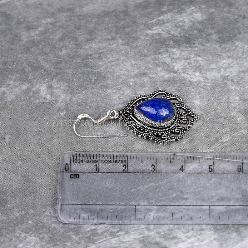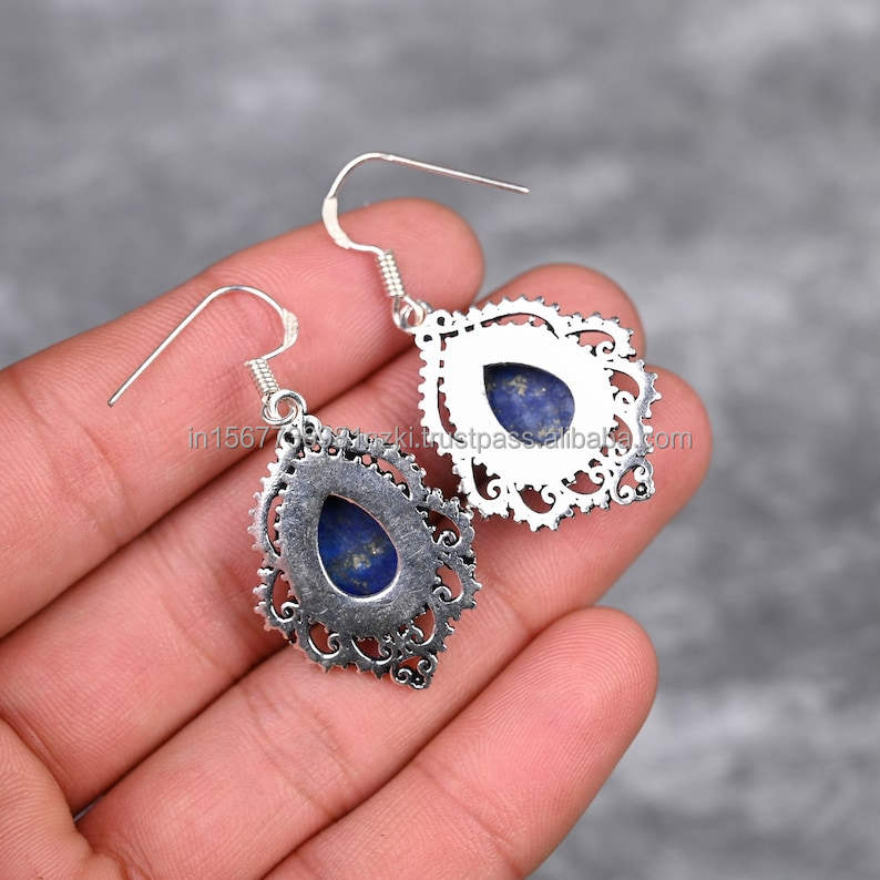 Pendientes de Plata de Ley 925 naturales hechos a mano, pendientes de plata con forma de marquesa de lapislázuli, pendientes hechos a mano, regalo para persona