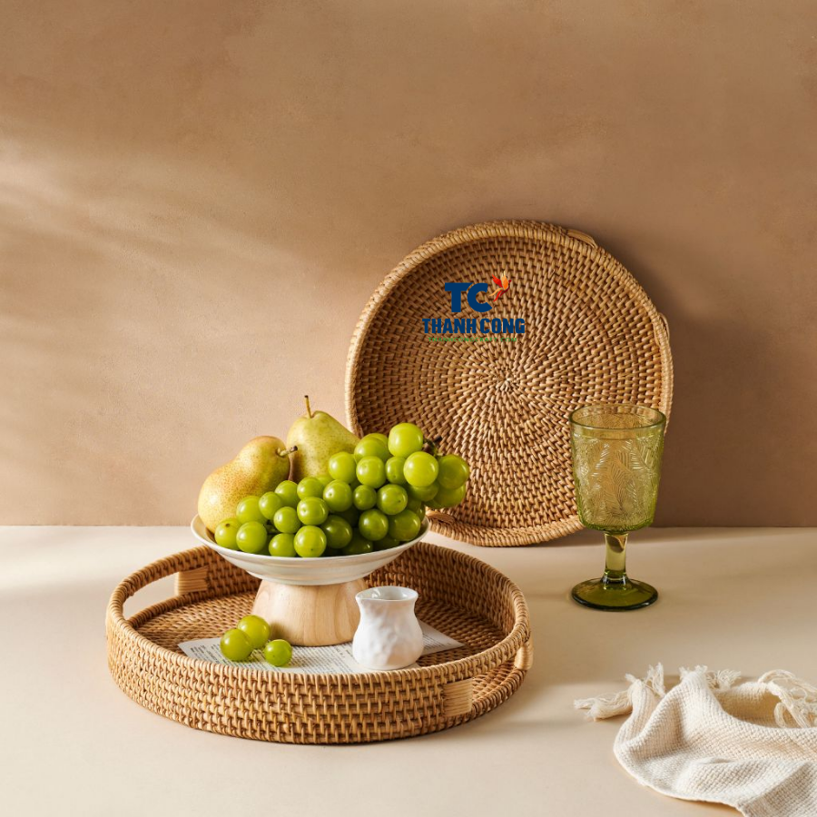 BANDEJA DE SERVICIO DE RATÁN Natural hecha a mano con asas Diseño elegante para cocina Comedor y exhibición de decoración del hogar