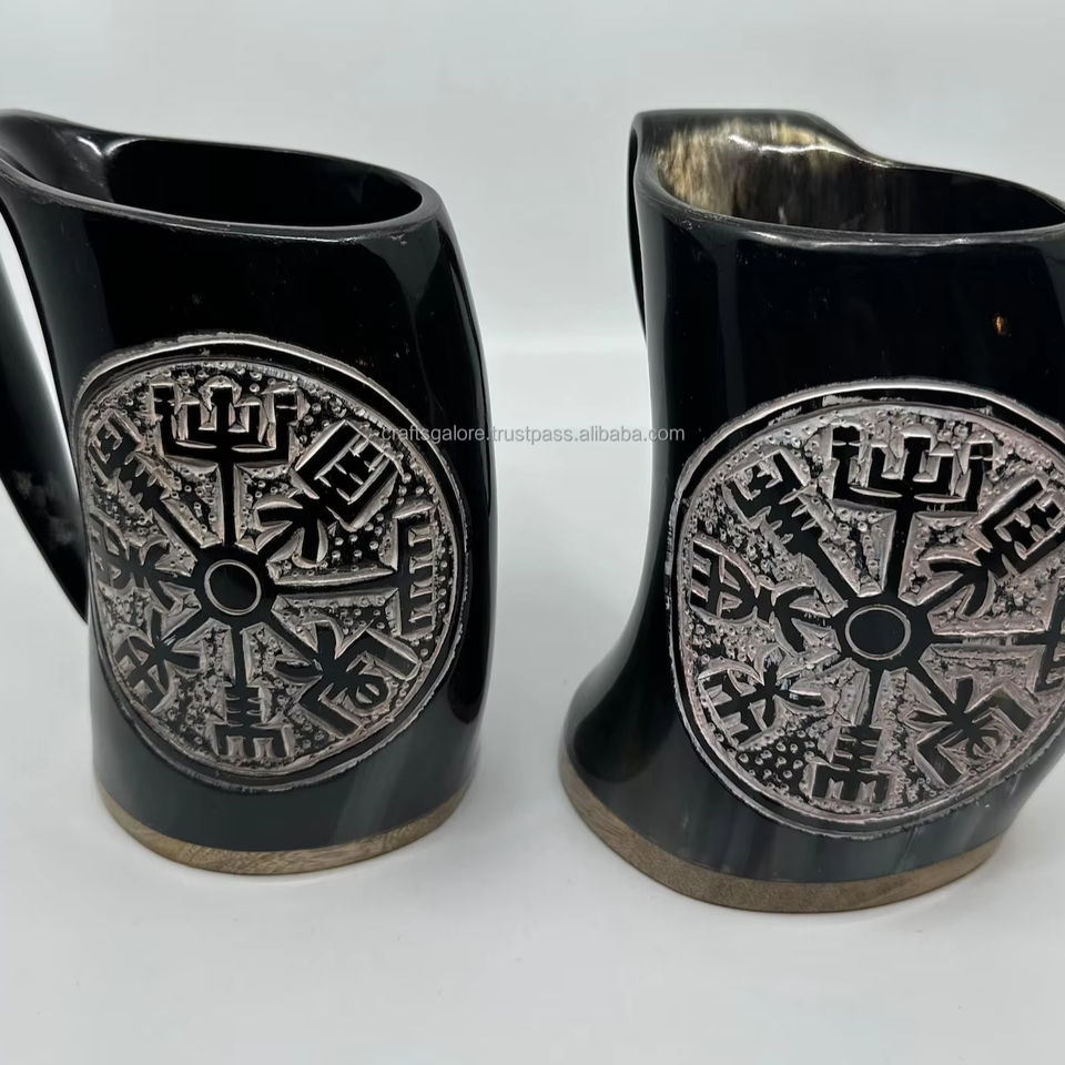 Cuerno Vikingo para Beber, Hecho a Mano, Pulido, Ecológico, Impermeable, de Cuerno de Búfalo/Vaca, Decoración Antigua para el Hogar, Premium