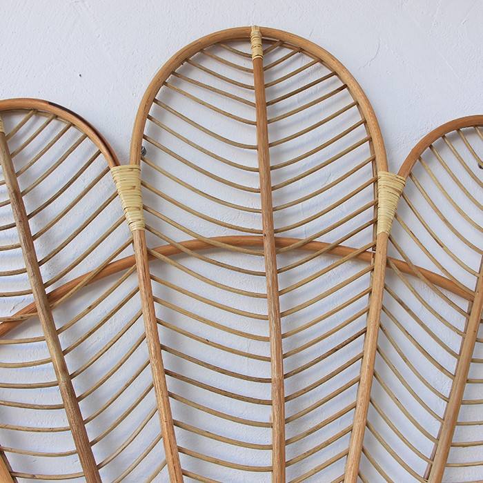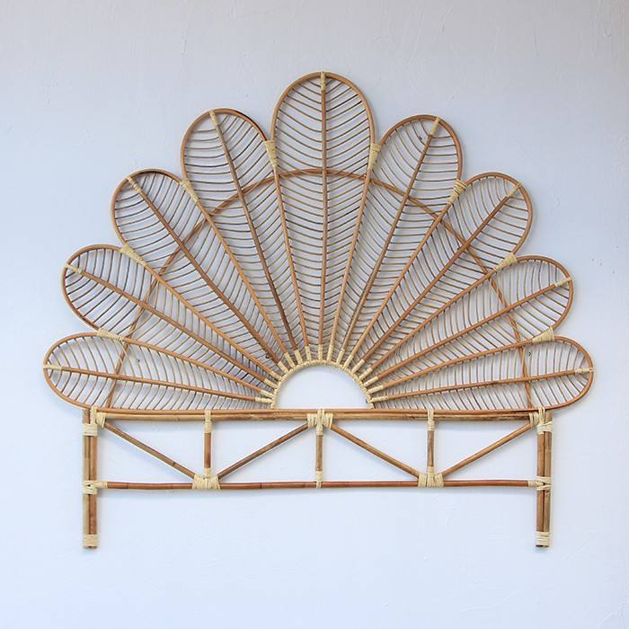 Cabecero de mimbre natural hecho a mano, diseño de hoja de abanico, cama de mimbre bohemio, dormitorio de fabricante de muebles al por mayor