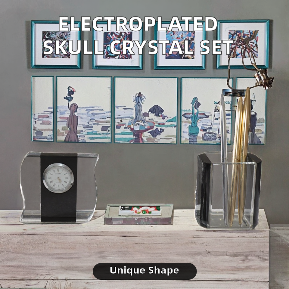 Cristales curativos naturales y piedras preciosas de metal Decoración del hogar Juego de cristales galvanizados con grabado de tema cruzado
