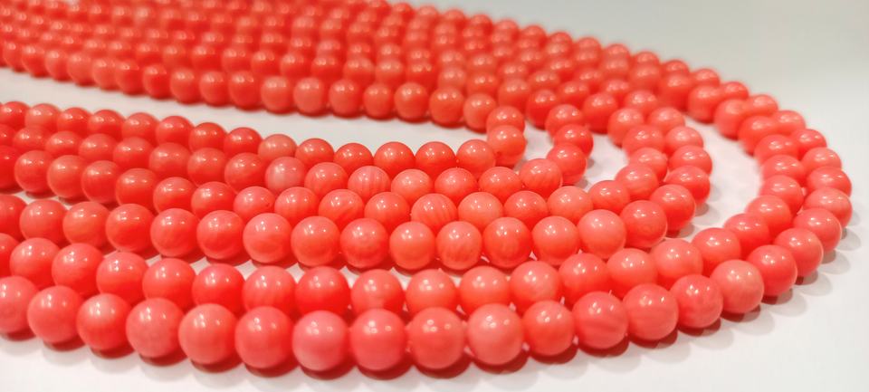 Cuentas de Coral Rosa Natural de Alta Calidad, Forma de Bola, Lisas, 5 mm, Hilo de 8 Pulgadas de Largo, para Fabricación de Joyas, Se Venden por Hilo