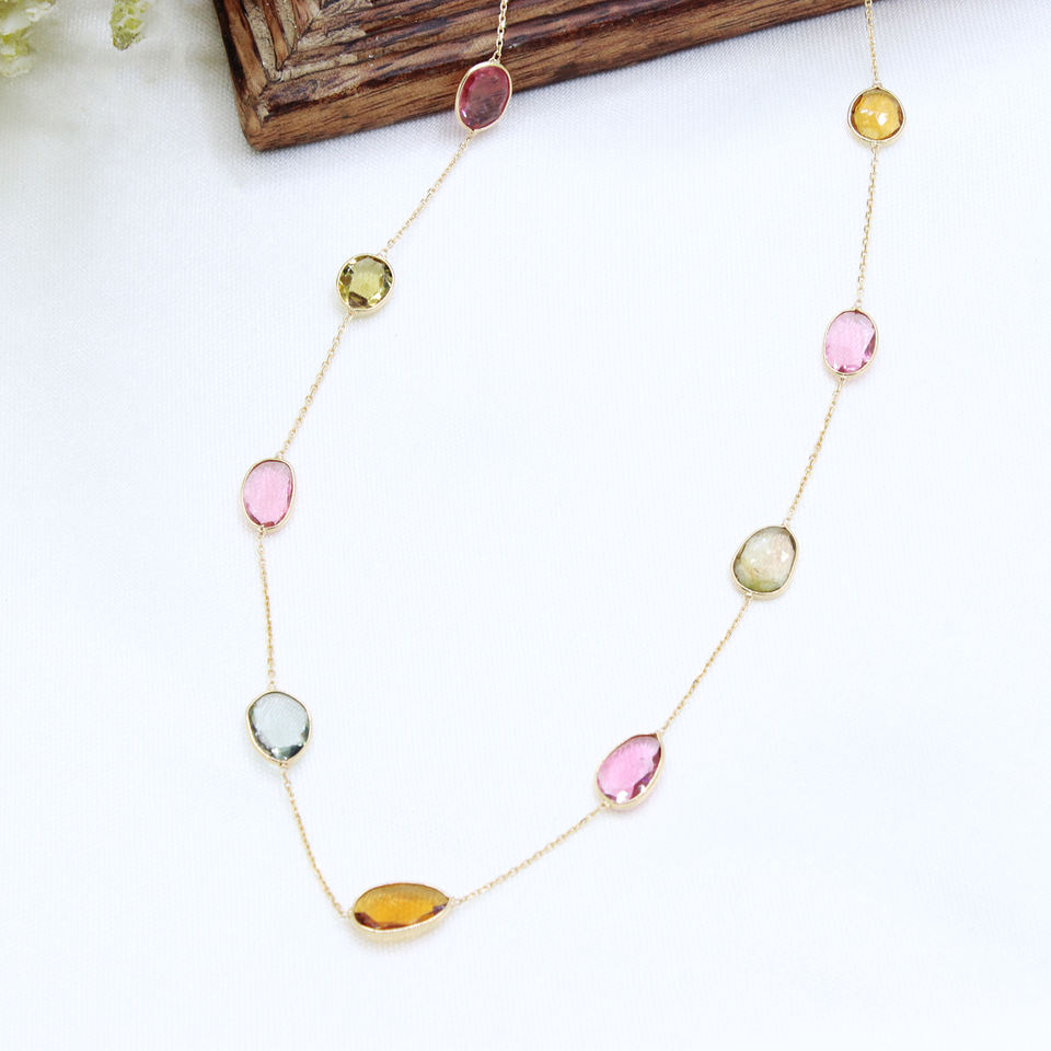 Nombre del elemento:Collar de oro multi turmalina natural