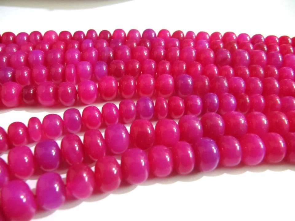 Cuentas de Calcedonia rosa fuerte natural Rondelle liso 9-10mm tamaño cuentas hebra 8 pulgadas de largo cuentas de piedras preciosas de Color rosa